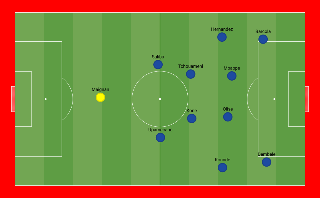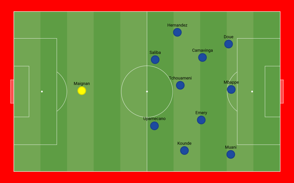 Sunday night in Paris, France dominated every aspect of the game, while Croatia played defensively and ultimately struggled. Didier Deschamps made significant changes to the starting lineup, even altering the formation. With two forward players (Mbappé and Olise), two wide wingers (Dembélé and Barcola), and two holding midfielders (Tchouaméni and Kone), France took control of the match. They maintained almost 70% possession and expertly exploited the spaces between the Croatian lines, especially through Olise. Barcola, positioned on the left wing, was in excellent form, frequently dribbling past Stanišić.