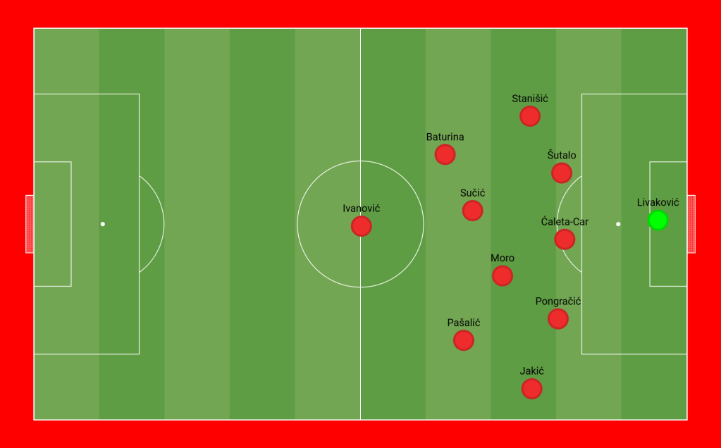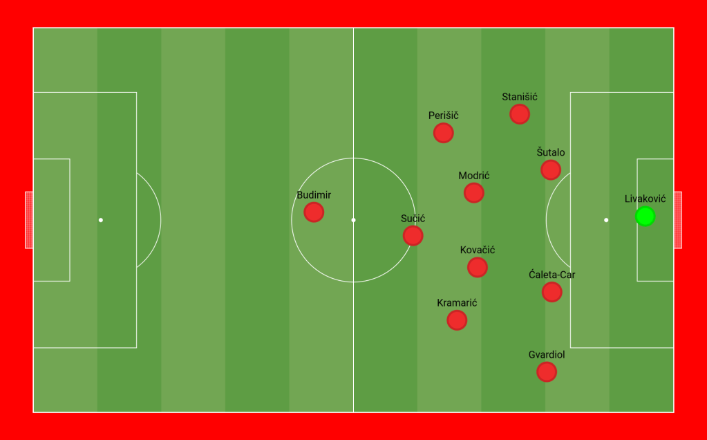 Dalić also altered his formation to a 5-4-1, bringing in Pongrančić as a third central defender, Jakić as a wing-back, and Pašalić and Baturina on the wings, with Moro and Sučić in midfield and Ivanović as the central forward.